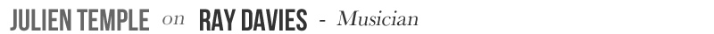 Julien Temple is a director of films, documentaries and music videos. He began his career with short films featuring the Sex Pistols, and has continued with various off-beat projects, including The Great Rock 'n' Roll Swindle, Absolute Beginners and a documentary about the Glastonbury festival. Julien has directed several videos for The Kinks, and directed the biopic Ray Davies: Imaginary Man in 2010. |