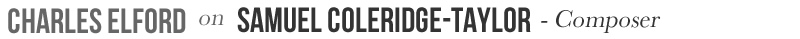 Samuel Coleridge-Taylor was a mixed race English composer whose great success led to his nickname as the African Mahler. His parents never married and he was brought up in Croydon by his mother, maternal grandfather and uncle who was a professional musician. His uncle proved a great influence and Coleridge-Taylor studied composition at the Royal College of Music under Charles Villiers Stanford (where he was a contemporary of Holst and Vaughan Williams).