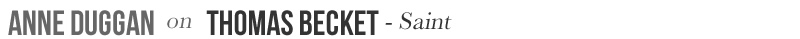 Anne Duggan, emeritus professor at King’s College London, is the world authority on Thomas Becket. She edited his Latin correspondence, wrote an acclaimed biography, and published numerous studies on his posthumous fame and impact. She appears regularly on TV (most recently in BBC2’s ‘Sacred Wonders of Britain’, Jan. 2014), and has lectured on aspects of the Becket phenomenon in various European countries. |