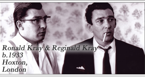 Ronnie and Reggie Kray were born in Hoxton in 1933. They became professional boxers in their teens and received dishonourable discharges from the army following their national service, before turning to organised crime. With their gang, "The Firm", the Krays became the most notorious gangsters of the 1950s and 60s, involved in armed robberies, arson, protection rackets, assaults and at least two murders.